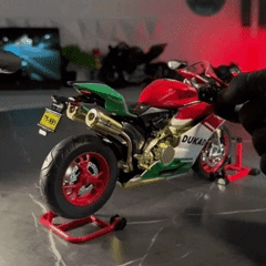 Realistic model with lights, sound, and smoke effect. Add water, twist the throttle, and the exhaust will release smoke just like a real motorcycle. Includes working suspension and high-quality finish . Ideal as a gift or for collecting.